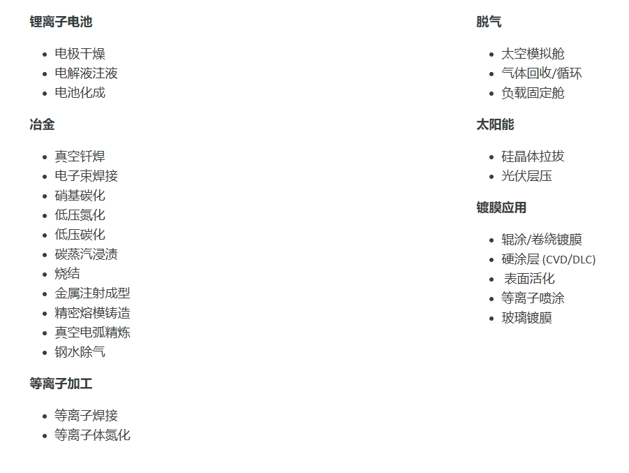覆盖真空镀膜、半导体、光伏、金属冶炼、食品加工、医疗等 20 + 行业领域;